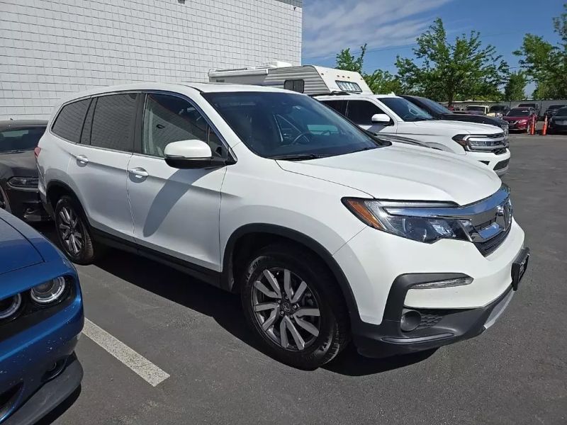 The car in question is a 2022 Honda Pilot EX-L whith white exterior and tan interior, currently being sold (or about to be sold) in Woods Cross Utah.